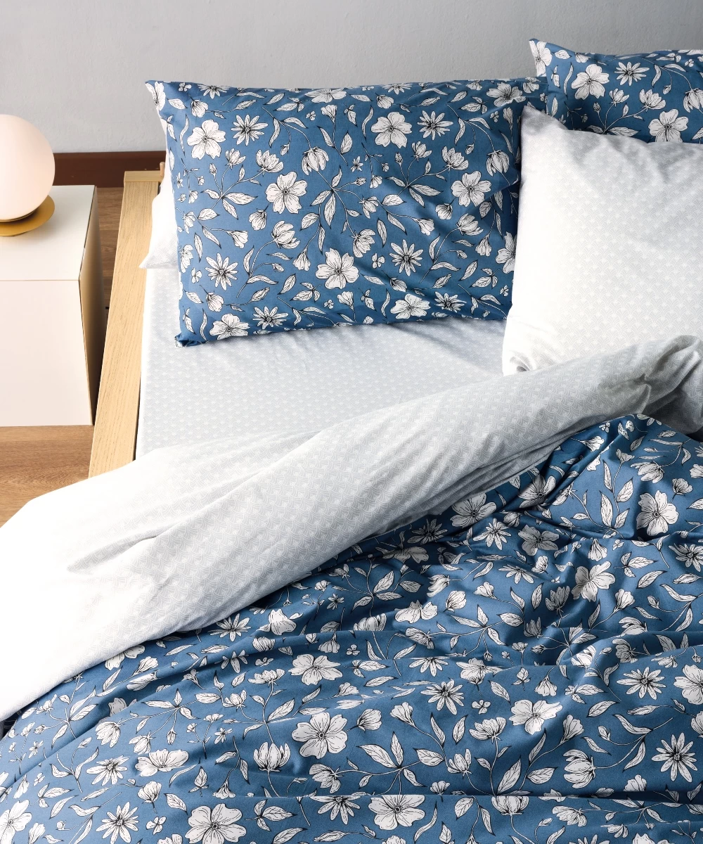 King size duvet, made of 100% cotton fabric with a 150 thread count (150 TC), with a smooth finish and soft feel. Very soft fabric, ideal for everyday use. Filling: Baked hypoallergenic wadding 300gr/m2, suitable for Mediterranean winter, machine washable. Recommended Washing at 40°C.