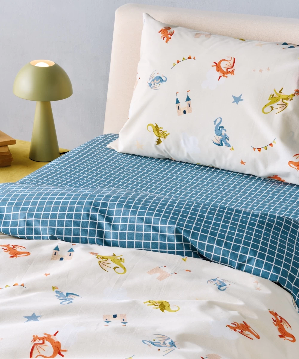 Set of 2 pieces (Single duvet cover and 1 pillowcase), made of 100% cotton fabric with a 150 thread count (150 TC), with a smooth finish and soft feel. Very soft fabric, ideal for everyday use. Recommended Washing at 40°C.